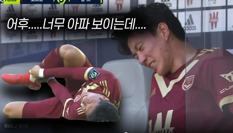 [필드에서 쓰러진 후 벤치에서 너무 아파하는 황의조.gif] 출처 : 에펨코리아_슬뀨