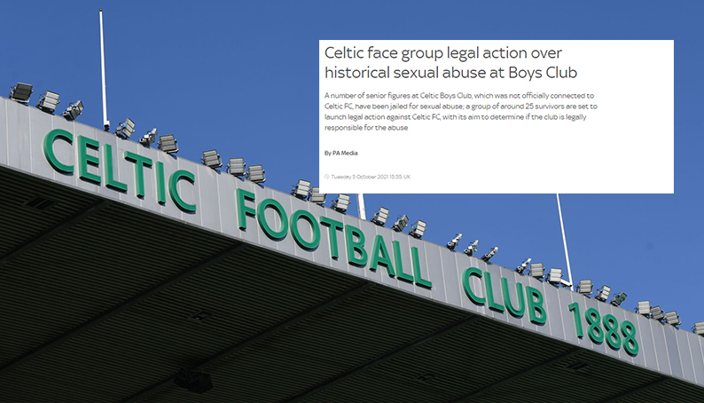 [최악의 집단 성추행 사건으로 소송 위기에 직면한 셀틱] (기사 전문: https://www.skysports.com/football/news/11787/12426680/celtic-face-group-legal-action-over-historical-sexual-abuse-at-boys-club )