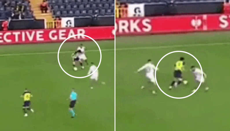 상대 태클 가볍게 벗기고 케인에게 어시하는 손흥민.gif