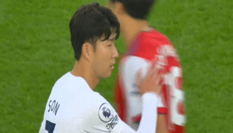 [경기 후 착잡한 표정으로 토미야스와 인사 나누는 손흥민.gif] 하.... 얼마나 착잡할지..... +)전반 3골 먹히고 현타온 손흥민..ㅠㅠ