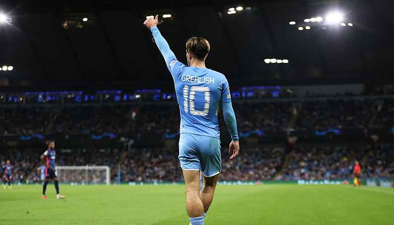 오늘자 그릴리쉬 챔스 데뷔골 궤적ㄷㄷㄷ.gif