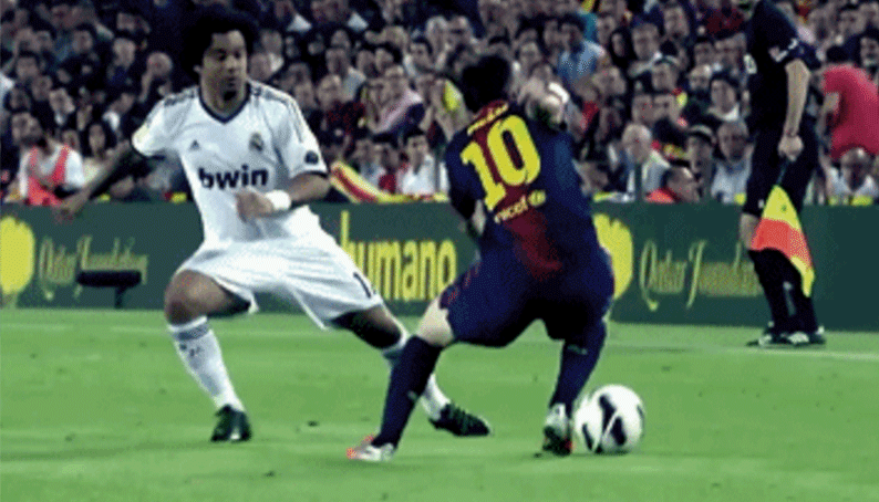 수비수를 춤추게 만드는 메시 특유의 스킬.gif