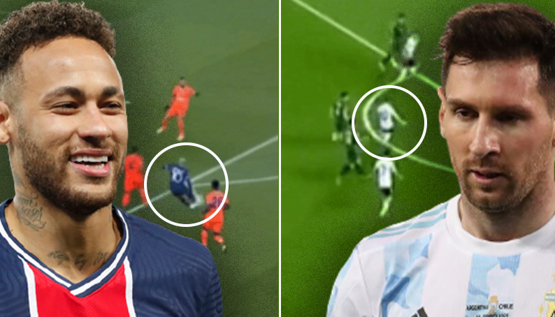 오늘 메시의 골장면과 유사한 골을 넣었던 네이마르.gif