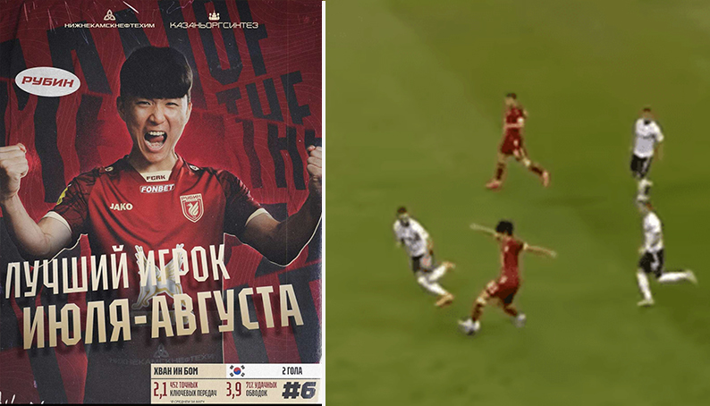 [루빈카잔 '7-8월 최고의 선수' 황인범의 이니에스타 모드 플레이.gif] 팬들이 직접 투표한 루빈카잔 '7-8월 최고의 선수'로 뽑힌 황인범 황니에스타 모드 보여주며 맹활약한 황인범 클라스ㄷㄷㄷㄷㄷ (공홈: https://www.rubin-kazan.ru/posts/in-bom-luchshiy-igrok-v-iyule-avguste )