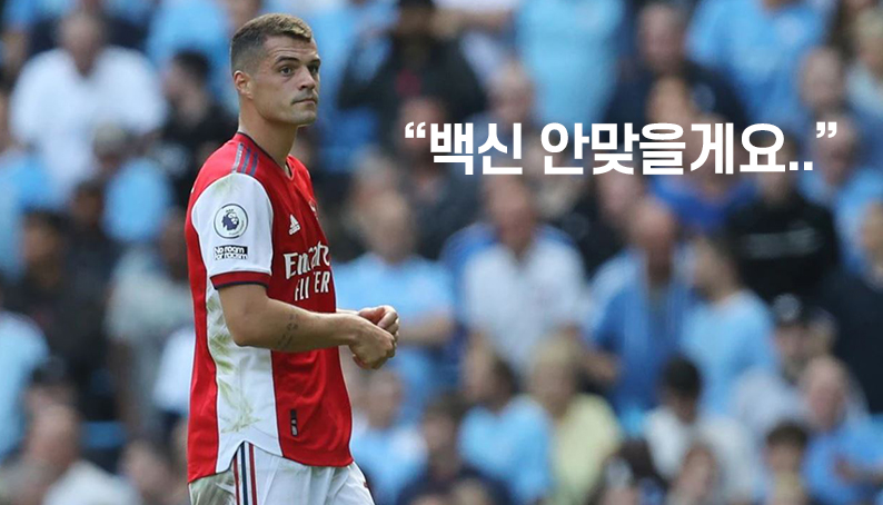 [그라니트 자카는 코로나 확진 판정 전, 백신 맞기를 거절했었다] (기사 전문: https://www.theguardian.com/football/2021/sep/02/granit-xhaka-decided-against-vaccine-before-positive-covid-test-says-swiss-fa )