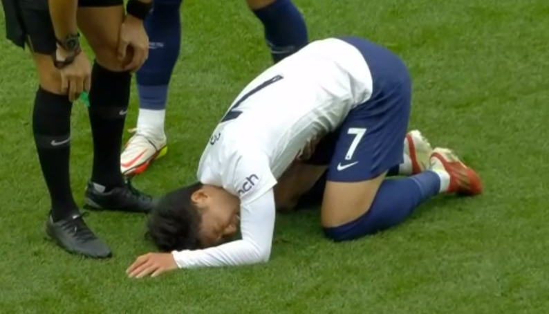 오늘 갑자기 쓰러지는 손흥민ㄷㄷㄷ.gif