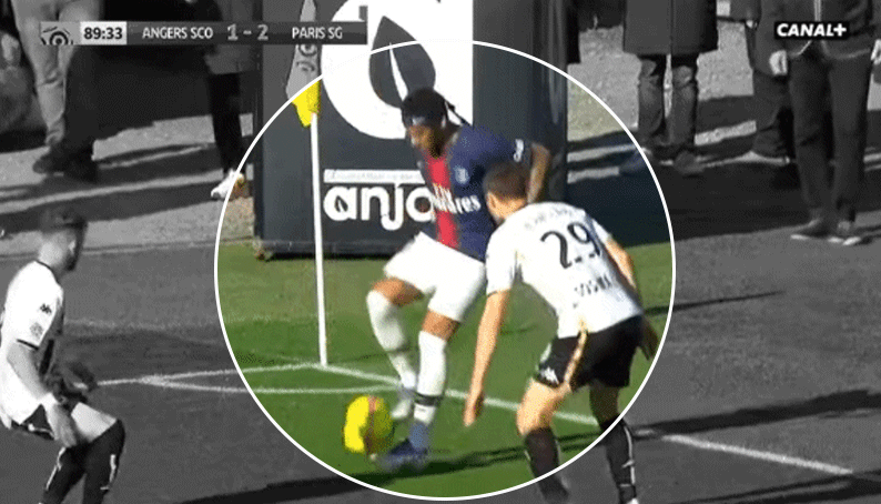 [트랩에 갇힌 네이마르의 대처법.gif] 살짝 볼을 띄운 후 바로 아웃사이드로 ㄷㄷㄷㄷㄷ