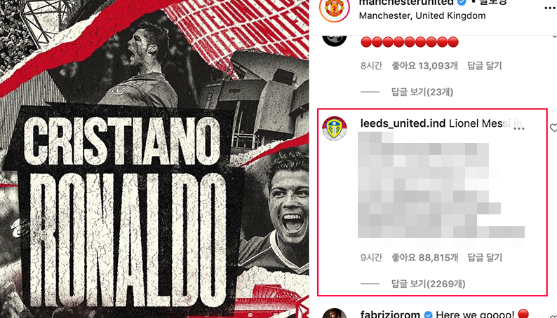 [맨유 호날두 오피셜글에서 좋아요 8만개 넘게 받은 댓글ㅋㅋㅋ] 엌ㅋㅋㅋㅋㅋㅋㅋㅋㅋㅋㅋ 진짜 역대급 이적시장이긴 하다ㅋㅋㅋㅋㅋㅋㅋㅋㅋㅋㅋㅋㅋㅋ 출처 : 맨유 공식 인스타그램