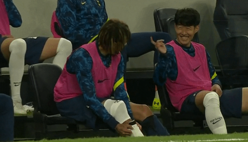 오늘자 벤치에서 혼자 즐거운 손흥민ㅋㅋㅋㅋ.gif