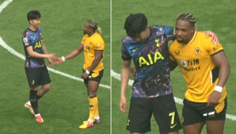 경기 종료 후 아다마 트라오레랑 친목나누는 손흥민.gif