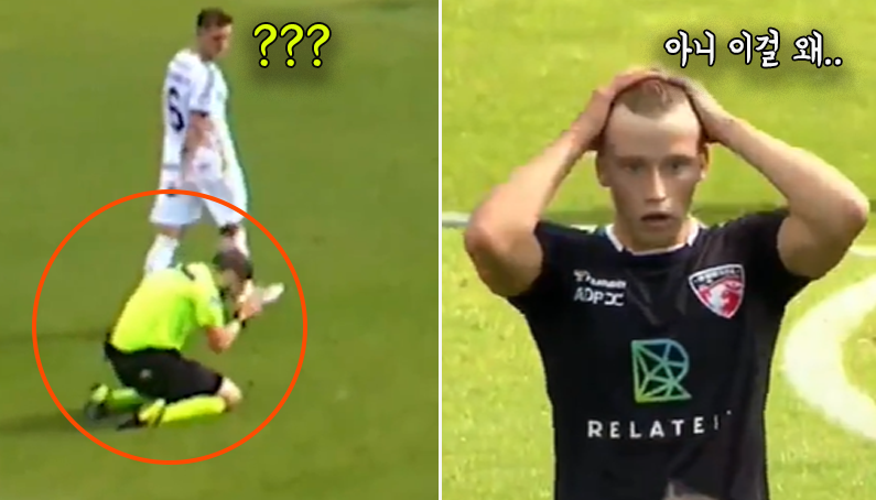 [본인의 판단미스에 바로 무릎꿇고 좌절하는 심판.gif] 어드벤티지를 주지 않고 파울을 분 뒤 본인의 판단에 좌절하는 심판ㅋㅋㅋㅋㅋㅋ 선수들 뭐라하다가 좌절하는 심판 보고 위로해주네ㅋㅋㅋㅋㅋㅋㅋㅋㅋㅋㅋㅋ 출처 : 뉴락싸_스퍼스랩