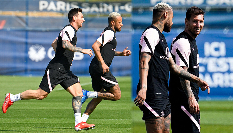 훈련중 계속 붙어다니는 메시와 네이마르.gif