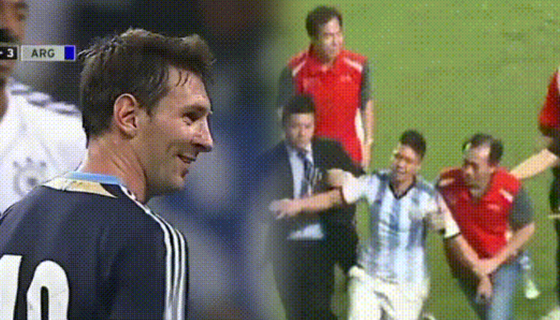 메시가 경기장에 난입한 관중을 대하는 법.gif