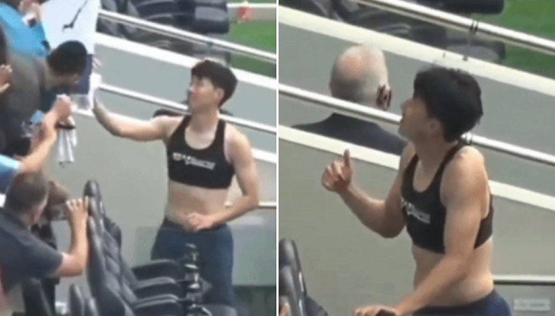 오늘자 경기 끝나고 팬에게 유니폼 선물하는 손흥민.gif