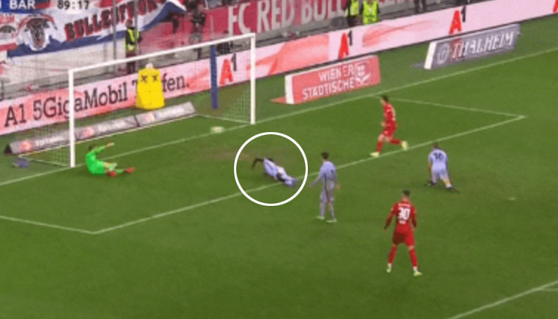 [오늘 새벽 움티티의 몸 개그.gif] 잘츠부르크와의 프리시즌에서 나온 장면.. 안 쓰럽게 넘어지는 움티티