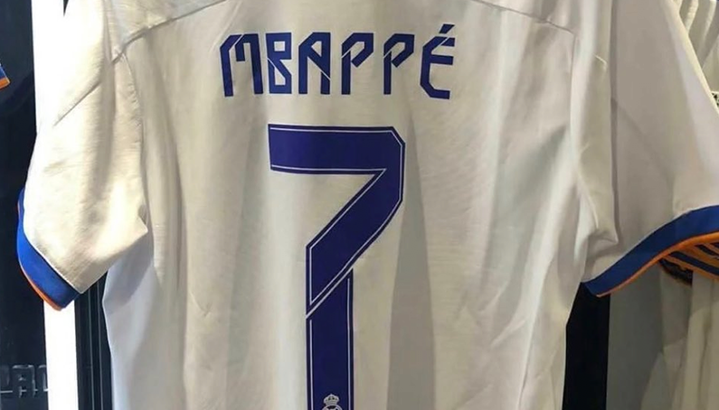 레알 마드리드 공식 스토어에 걸린 음바페 유니폼.jpg
