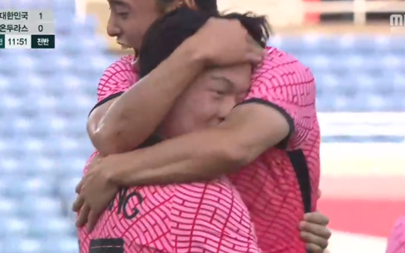[실시간 황의조의 선제골 장면.gif] 이동준이 깔끔하게 얻어내고 황의조의 PK 마무리 출처 : sbs, 에펨코리아_사슴가슴