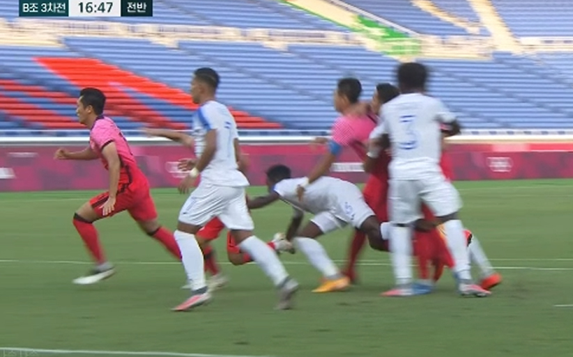 [너무도 명백한 두번째 피케이 파울 장면.gif] 뭐여 완전 잡아 끌었네!!!원두재의 피케이 골! 출처 : sbs, 에펨코리아_사슴가슴