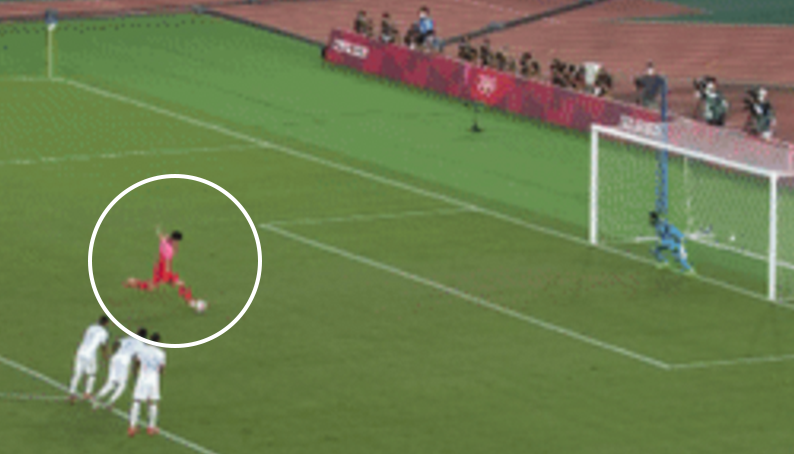 수비벽 밑으로 깔아차는 권창훈의 프리킥ㄷㄷㄷ.gif
