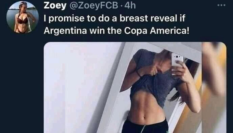 아르헨티나가 우승하면 가슴 노출 사진을 올린다던 여성 축구팬