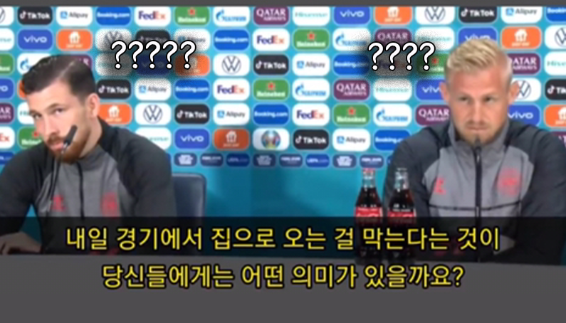 덴마크 선수들에게 무례한 질문을 하는 잉글랜드 기자