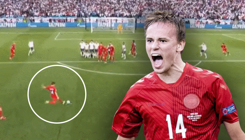 [미친 프리킥 선제골 기록하는 덴마크 담스고르.gif] 미친 프리킥으로 선제골 기록하는 덴마크의 담스고르