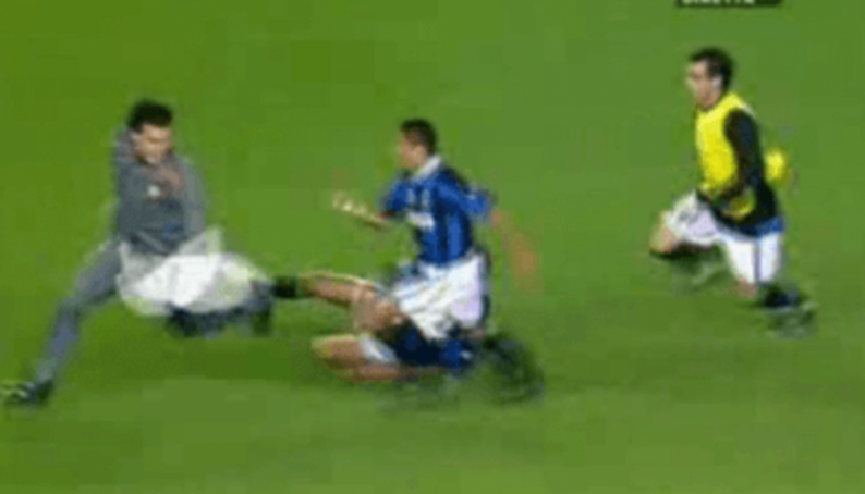 [챔피언스리그 역사상 가장 골때리는 미친 사건.gif] 경기내내 뭔가 감정이 쌓여있던 두팀은 결국 경기 종료 후 맞붙게 되는데 그중에서도 크게 붙은건 발렌시아 마르체나와 인터밀란 부르디소 양팀 배테랑까지 나서서 겨우겨우 진정되나 했더니 뜬금없이 등장한 발렌시아의 나바로는 부르디소의 코뼈를 날려버리고 튀어버리는데 동시에 시작된 인터밀란 선수들의 추격 혼신의 힘을 다해 추격했고 심지어 마이콘에 발빠르기로 유명한 코르도바까지 쫓았으나 결국 나바로를 놓친 인터밀란 선수들 유유히 라커룸으로 탈주하는 나바로와 아주 빡돌아버린 인터밀란 선수 전원 무방비 상태에서 쳐맞은 부르디소는 코뼈작살나서 골절;; 아마도 사네티 커리어 역사상 가장 빡친날 다 늙어서 은퇴직전의 톨도옹은 너무 개빡친 나머지 발렌시아의 방어망을 뚫고 닥돌 톨도옹 뿐만아니라 피구옹도 뵈는게 없어진 상태 사실 인터밀란 선수들 뿐만아니라 전 스탭이 개빡쳐서 라커룸 쳐들어가려는 중 애초에 싸움 말리던 즐라탄도 빡친건 마찬가지라 진정시키던 상대팀 감독 키케 플로레스랑 맞짱뜰 기세 씩씩거리며 나가는 즐라탄과 리얼 유쾌 그자체의 상반된 표정 (경기자체는 발렌시아가 원정 다득점으로 이겨서 8강 진출) 이때 보여준 나바로의 미친 회피 능력덕분에 한동안 별명이 나잡아바로가 됨 그이후 <발렌시아> 다비드 나바로 : 7개월 출장정지 카를로스 마르체나 : 6경기 출장정지 <인터밀란> 니콜라스 부르디소 : 6경기 출장정지 마이콘 : 6경기 출장정지 이반 코르도바 : 3경기 출장정지 훌리오 크루즈 : 2경기 출장정지 발렌시아 & 인터밀란 - 각각 약 15만유로 벌금