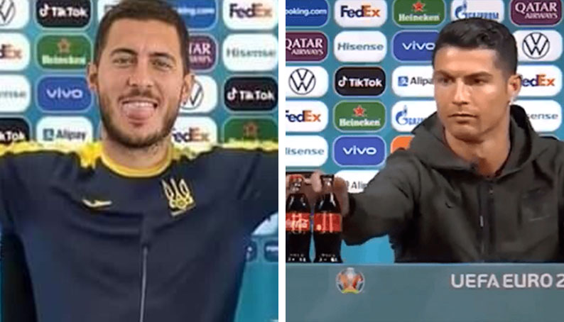 [코카콜라 호날두 사건. '만약 아자르라면?' 합성짤] 이런 건 누가 만드는 건지ㅋㅋㅋㅋ 코카콜라 햄버거는 못 참지!!