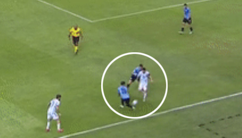 [35세, 오늘자 메시의 반응 속도.gif] 수비 발 맞고 튕긴 걸 바로 이용해 탈압박 해버림
