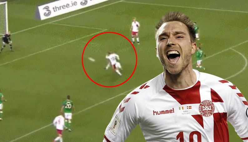 [덴마크의 축구 영웅, 에릭센.gif] 2017년. 러시아 월드컵 티켓을 두고 펼쳐진 플레이오프 2차전. 에릭센은 이날 해트트릭을 기록하며 덴마크를 월드컵으로 보낸다. (월드컵 예선 12경기 11골 3어시 기록)