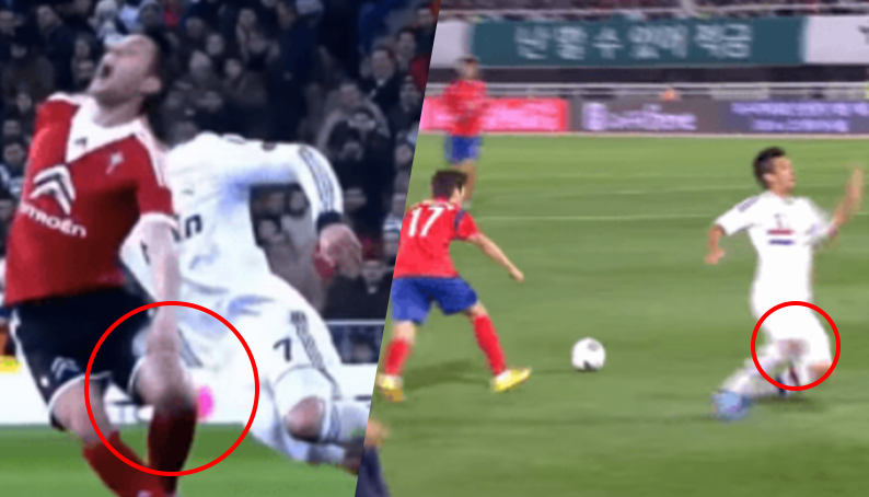[상대 십자인대를 부숴버리는 축구기술.gif] 일명 백숏. 바깥발로 공의 진행방향을 완전히 바꿔버리는 기술 타겟터로 변하기전의 호날두 패시브 스킬로 유명함 급격한 방향전환으로 무릎이 완전히 작살나는 모습 이거 당한 저 선수들 십자인대 부상에 시즌아웃당함ㄷㄷㄷㄷ