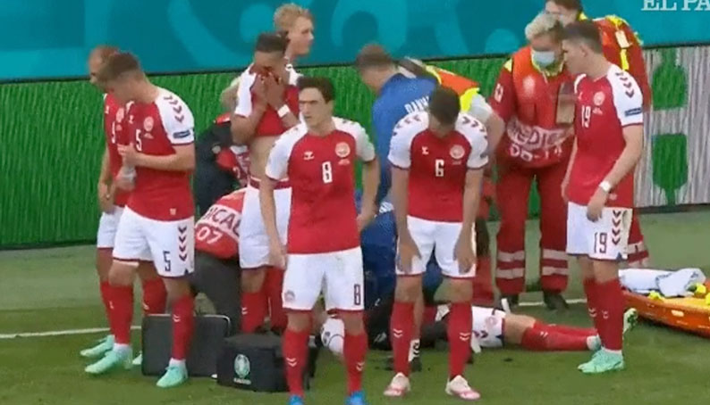 CPR 받는 에릭센을 보호하는 덴마크 선수들.gif