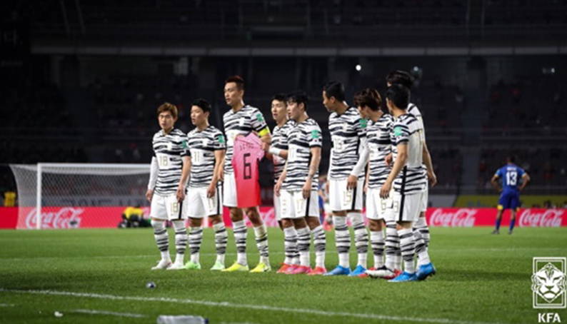 대한민국 선수들의 유상철 감독 추모 세레머니.gif