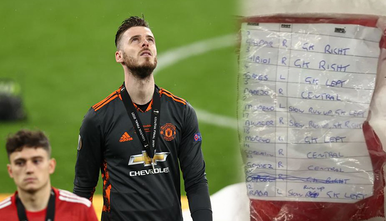 ['코치 작전 무시?', 데 헤아의 승부차기 논란] 유나이티드의 코치진은 데 헤아에게 노트를 건네주었다. 노트안에는 선수별로 주로 어디로 차는지가 적혀있었다. 심지어 어디로 다이빙을 해야 하는지까지 적혀있었다. 데헤아는 처음에는 노트에 적힌 그대로 따랐다. 하지만 그럼에도 막는데는 성공하지 못했다. 6번째 막시 고메즈부터 따르지 않았다. 노트에 따라 가운데로 찼으나, 키퍼는 왼쪽으로 뛰었다. 이후 코클랭과 파우 토레스의 차례에도 자신의 본능대로 다이빙 했다. 5번이나 노트에 적힌대로 따랐는데 못막았으니 이걸로 데헤아를 탓하긴 뭐하지만 6번째까지 따랐으면 어땟을지 아쉽기는 하겠네요...!! 출처 : https://www.thesun.co.uk/sport/football/15087472/man-utd-de-gea-ignored-penalty-advice-villarreal/