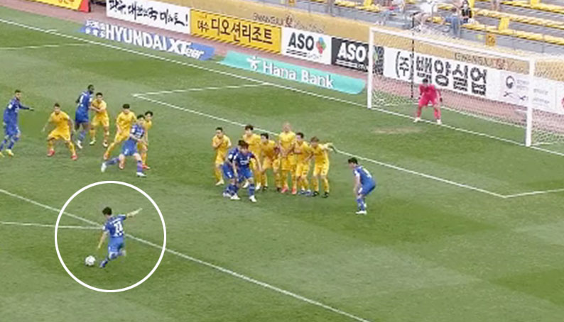 [국대 뽑힌 '이기제'의 프리킥 수준.gif] 수원 삼성 이기제의 프리킥ㄷㄷ 왼발 키커에다가 궤적 미쳤음