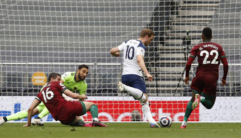 수비 정신 못차리게하는 케인 선제골ㄷㄷ.gif