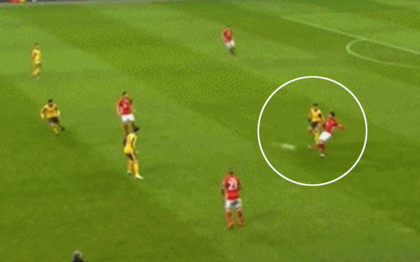 [시청자와 수비수를 멍 때리게 만든 패스.gif] 슈팅할 것처럼 하더니 톡.. 저 공간을 보다니 (파브레가스의 미친 패스)