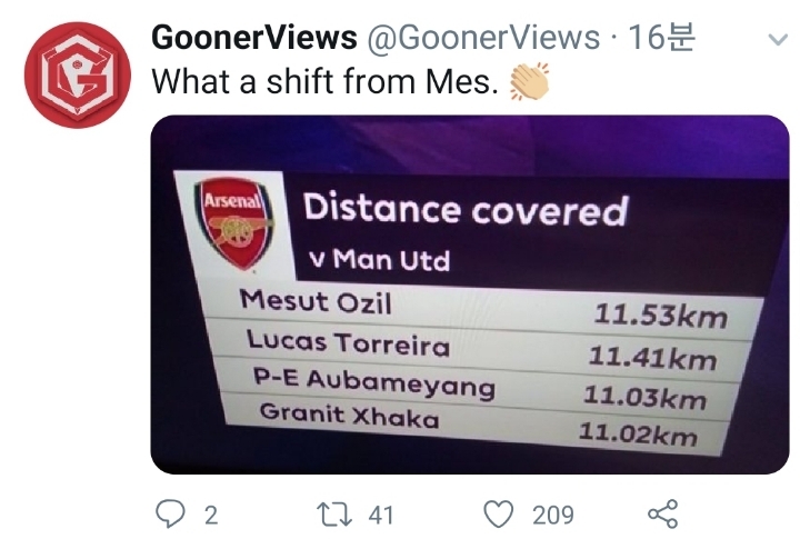 [돌아온 외질 경기 스탯&히트맵(vs 맨유)]