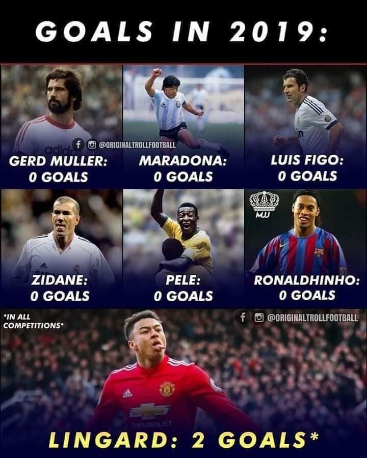 게르트 뮐러, 마라도나, 루이스 피구, 지단, 펠레, 호나우지뉴 2019년 0골