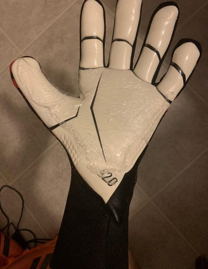 펀칭할 때 공이 닿는 백핸드 부분에 무시무시한 돌기들이 적용되어 있는 것이 인상깊네요. 이 돌기들만 봐도 프레데터 20과 한 세트를 이룬다는 것을 알 수 있네요. 그리고 정확하게는 알려지지 않았지만 백핸드 부위가 니트로 제작된 것 같아 보입니다.