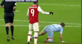 아무런 경고도 없이 넘어간 논란의 라카제트 파울장면.gif