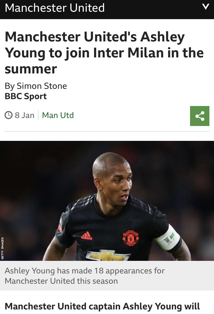 [[BBC속보]애슐리 영, 인터밀란 던 딜]