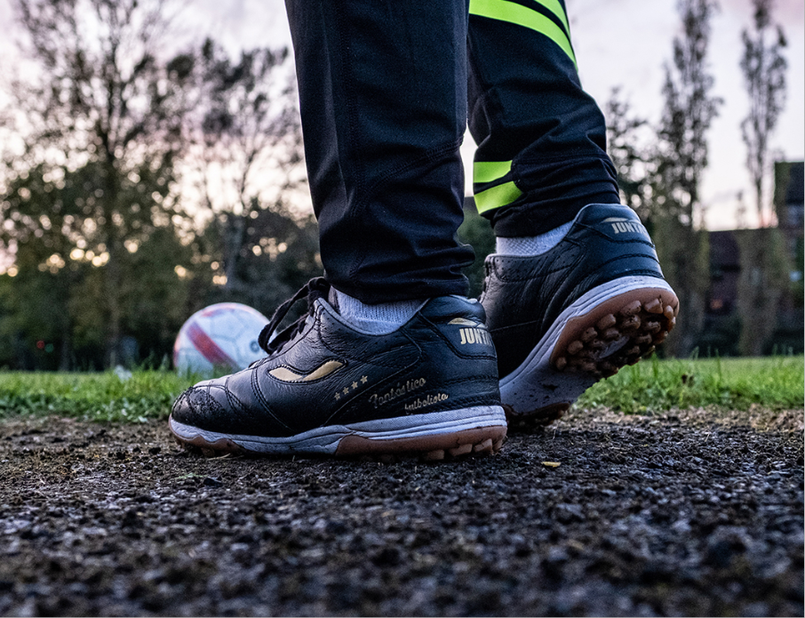 준타스 풋살화는 클래식 터프화를 컨셉으로 하고 있습니다. 기존의 클래식 풋살화들의 제품들은 무거운 제품들이 많기 때문에 전체적으로 ‘편안함’과 ‘가벼움’에 초점을 맞추고 있습니다. 클래식과 현대적 감각을 섞으려고 많이 노력했죠.