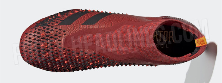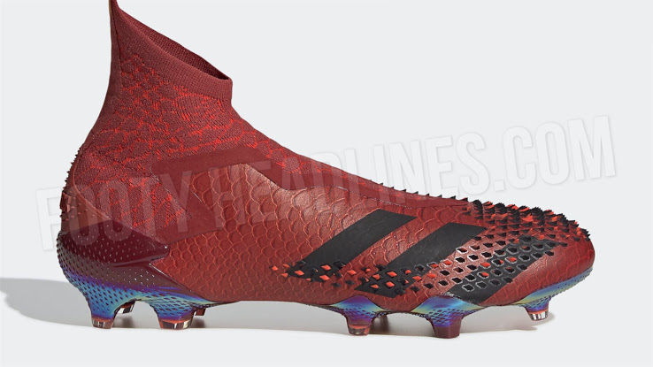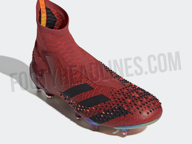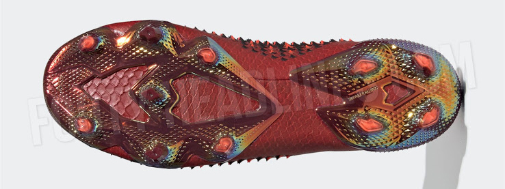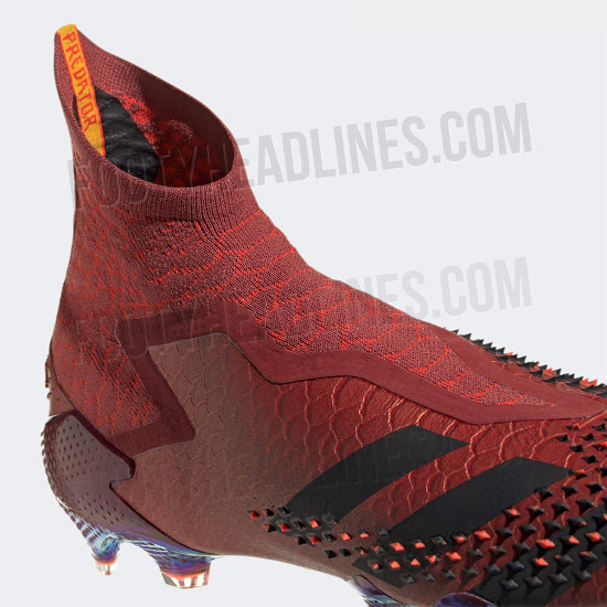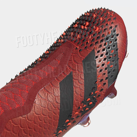 유출된 프레데터 20+는 버건디(burgundy) 컬러를 메인으로 제작됐습니다. 그리고 어퍼와 발목 칼라에는 마치 ‘용 비늘’을 연상시키는 텍스처가 적용됐습니다. 대체 어떤 컨셉으로 제작된 것일까요?