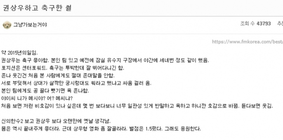 [[펌] 권상우랑 축구한 썰ㅋㅋㅋ]