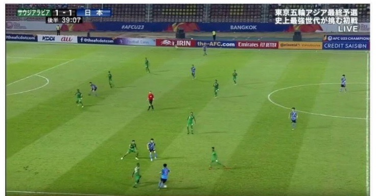 도쿄올림픽 아시아 최종예선 사상최강세대가 도전, 첫 경기라고 적혀있는 자막