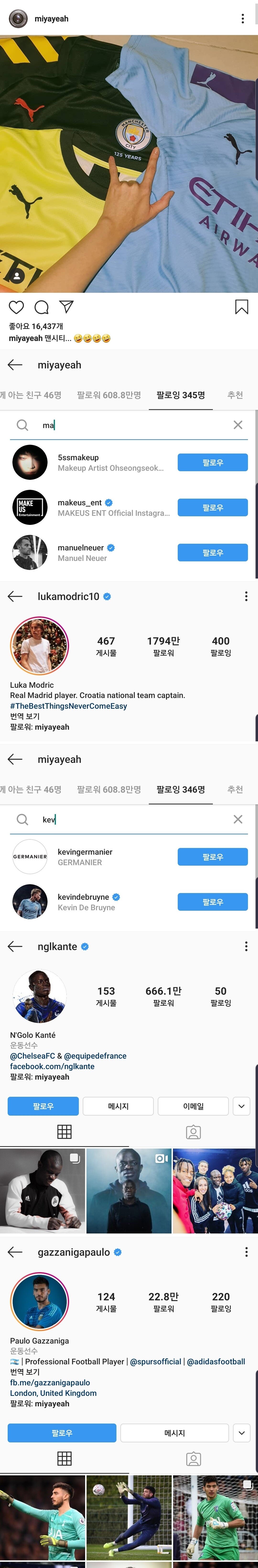 맨시티 외에도 여러 선수들 인스타를 팔로우했네요!!!