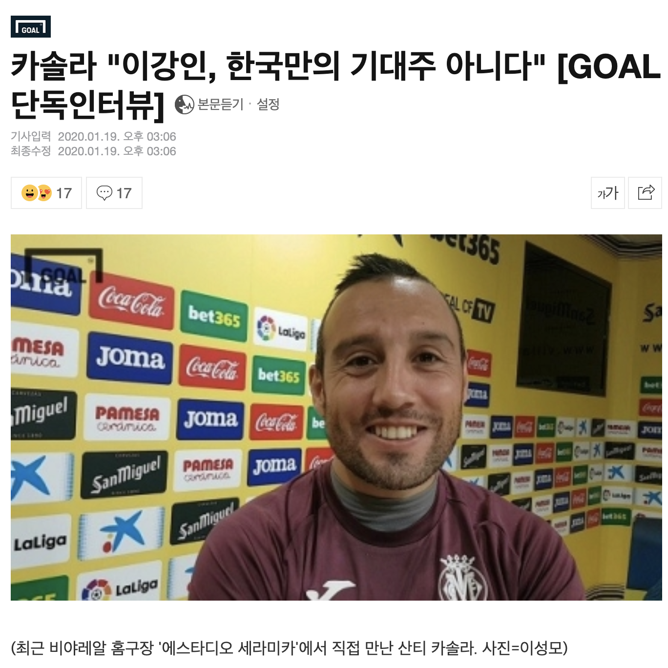 카솔라 "이강인을 보고 아주 깊은 인상을 받았다"
