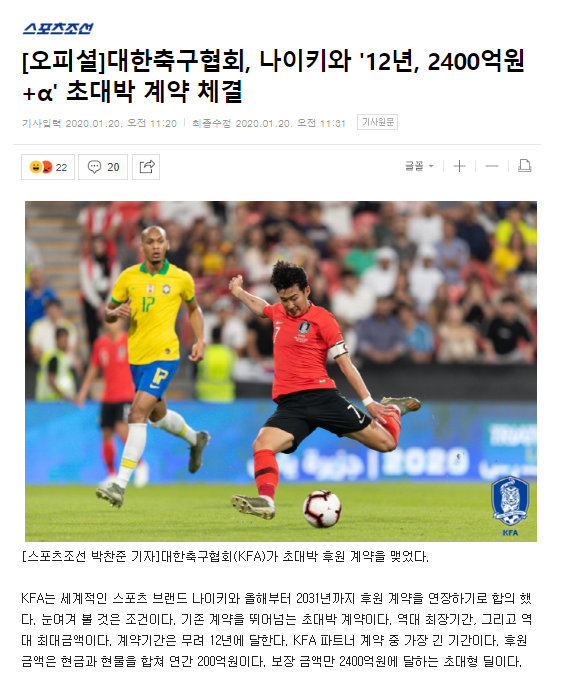 | [오피셜]대한축구협회, 나이키와 12년 장기 재계약&초대형 계약 체결 | |