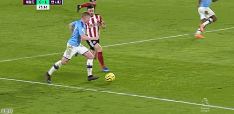 가랑이 사이로 미친 크로스 날리는 데브라이너.gif